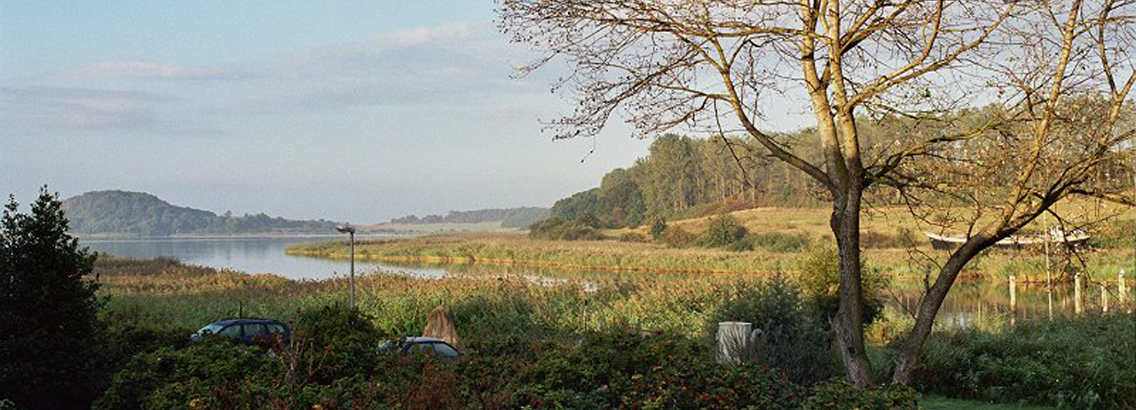 Unser geräumiges Ferienhaus liegt an der Dorfstraße etwas hangaufwärts. Die Dorfstraße mit Anliegerverkehr ist nur an einer Seite bebaut und läuft parallel zur Uferwiese, dem Schilfgürtel und dem Wasser. Das schräg unterhalb unserer Wohnung gebaute weitere Ferienhaus schützt zudem noch vor Verkehrsgeräuschen. Die SW-Hanglage unseres Ferienhauses mit traumhaftem Blick auf Wasser- und Boddenlandschaft sowie den Yachthafen bietet absolute Ruhe im schönen, individuell gestalteten modernen Landhaus- Ambiente mit hohem Komfort für zwei Erwachsene und zwei Kinder.